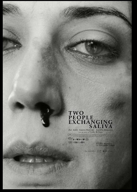 Synopsis: In a society where kissing is punishable by death, & people pay for things by receiving slaps to the face. Angine, an unhappy woman, shops compulsively in a department store. There, she becomes fascinated by a playful salesgirl. Despite the prohibition of kissing, the 2 become close, raising the suspicions of a jealous colleague. (IMDB.com)